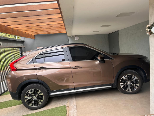 Garagem para 2 carros coberta com pergolato em madeira e vidro de 10 mm temperado.